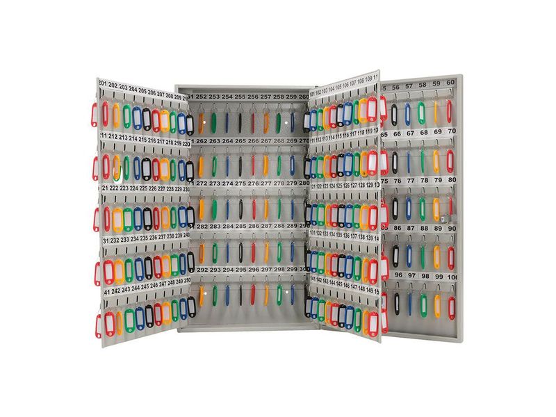 - В комплект ключниц входят пластиковые цветные брелоки, рассчитанные на количество ключей и самоклеящиеся номерки