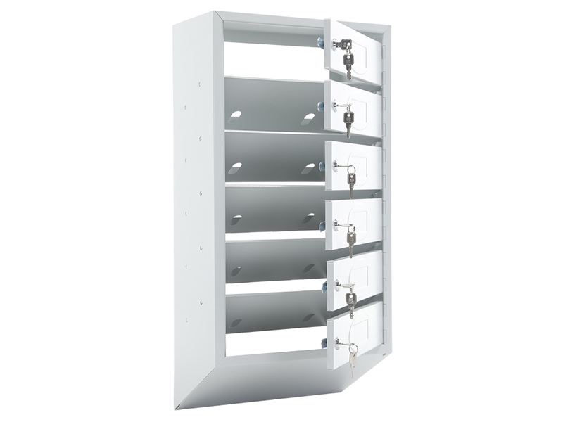 - Каждая секция имеет дверцу, запирающуюся индивидуальным ключевым замком (2 ключа в комплекте).