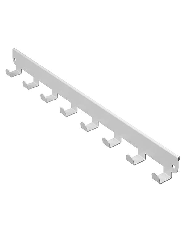 Крючки представляют собой металлическую планку с 8 крючками, которая навешивается на внешнюю боковую поверхность кронштейна в гардеробной системе ПРАКТИК HOME.