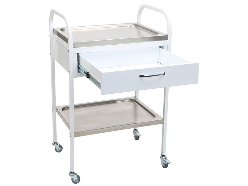 - столик процедурный имеет 4 колеса из немаркой резины, D= 50 мм. Два колеса снабжены тормозом