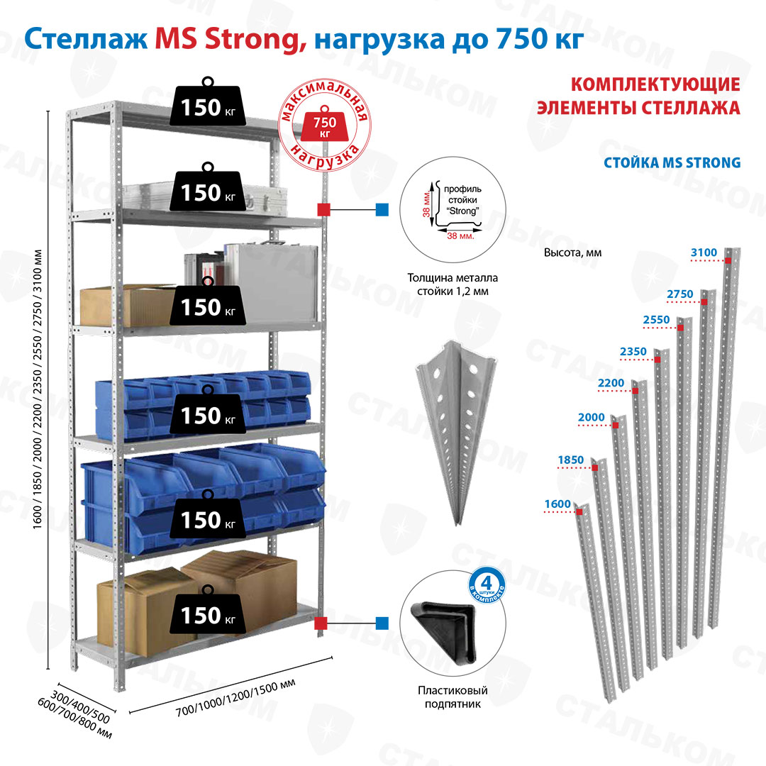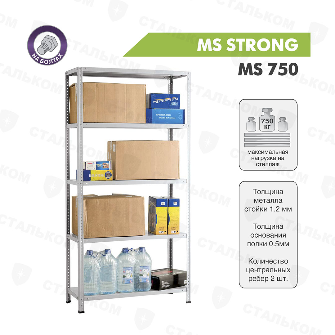 Бесплатная доставка стеллаж MS Strong 2750х1200х400, 6 полок до пункта выдачи оплаченных заказов.