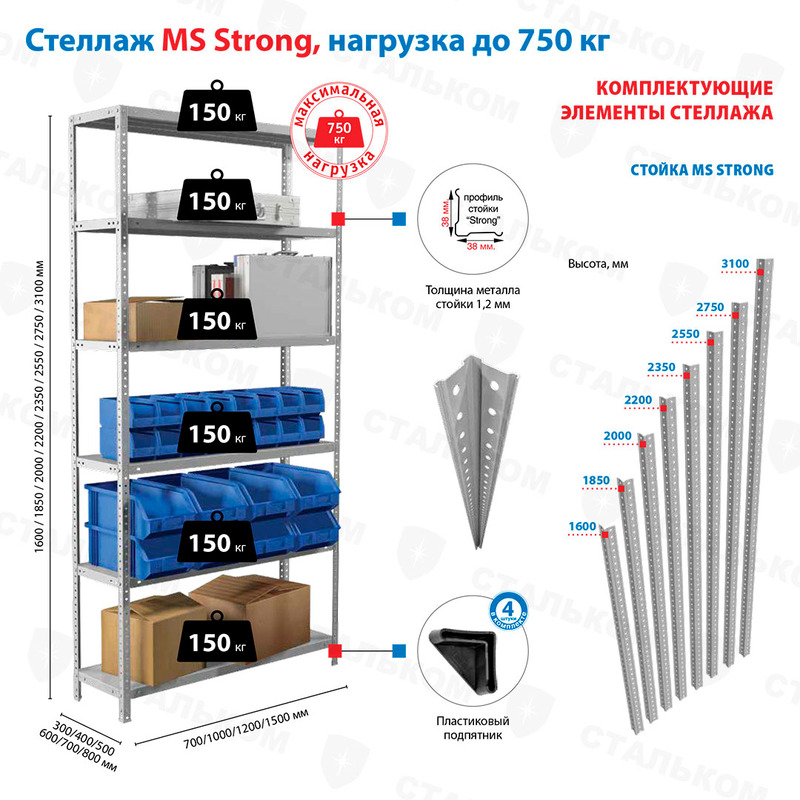 - Стеллажи Практик: MS Standart, Strong, Hard, Pro, U