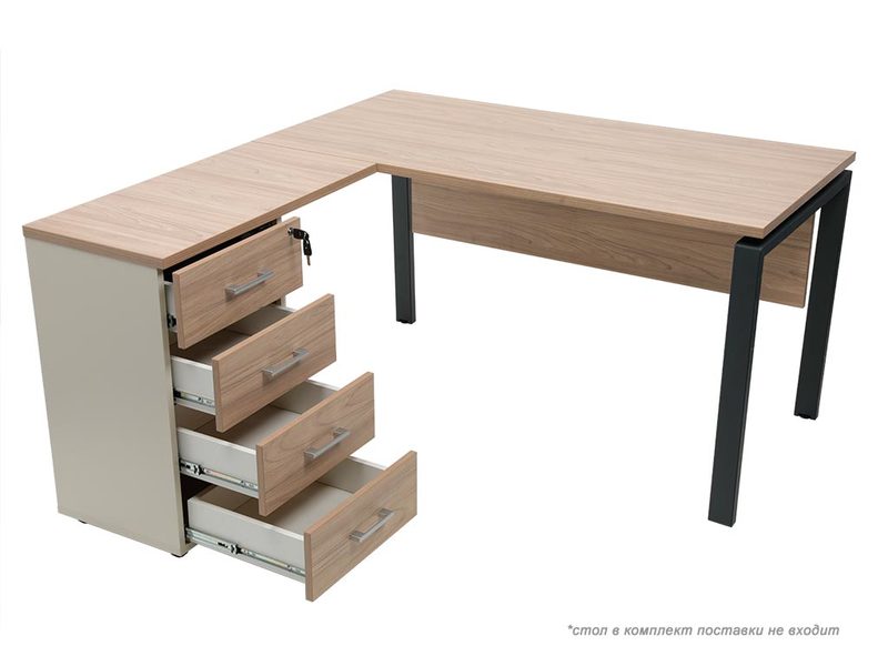 - тумба снабжена центральным замком и оснащена пластмассовым лотком для канцелярских принадлежностей в верхнем ящике